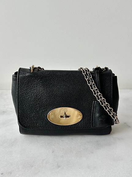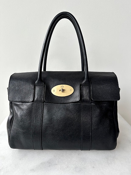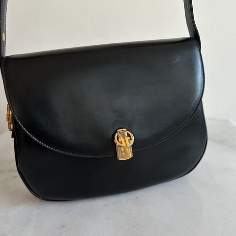 Sort smooth calf leather med antik-guld hardware.