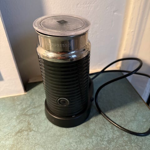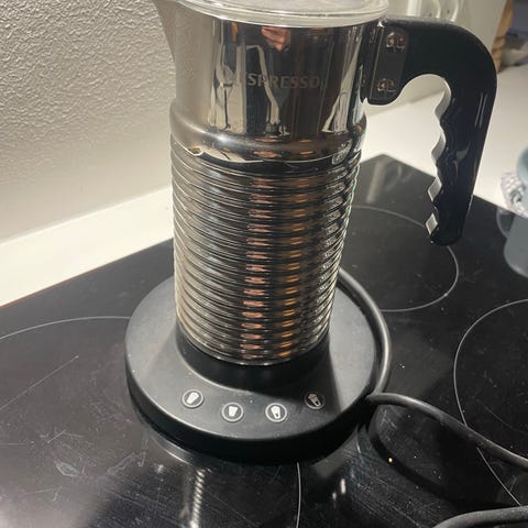 Nespresso Aeroccino mælkeskummer i sort farve. Designet til at skumme mælk til kaffedrikke. Kompakt størrelse og elektrisk drevet.