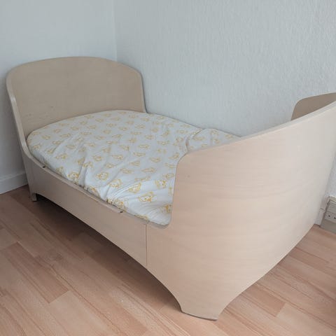 Alt tilbehør medfølger, så den både kan bruges som baby og juniorseng.