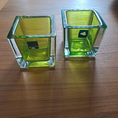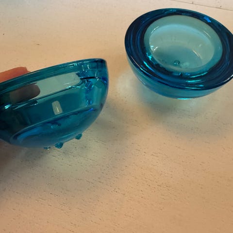 Iittala glas med mønster i grøn/turkis glas. Passer til fyrfadslys