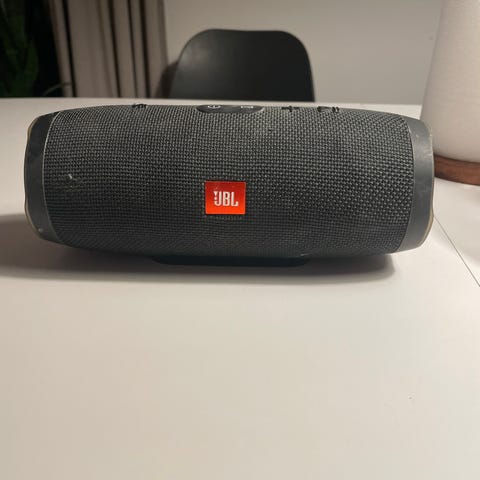 JBL Bluetooth højttaler i sort farve med bærbar design. Højttaleren er velegnet til trådløs musikafspilning og har en robust konstruktion.