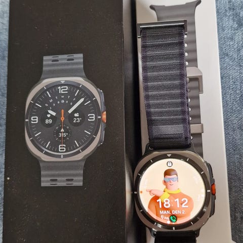 Samsung Watch Ultra sælges ca, 2 måneder gammel. Fejlkøb sælges virker perfekt i forbindelse med en mobiltelefon men indtil videre kun sammen med Android telefoner.