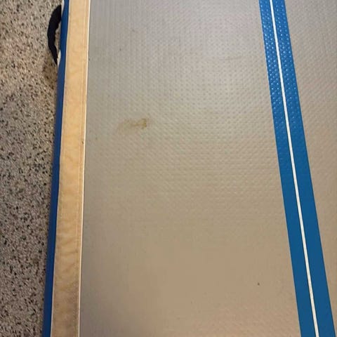 GymPlay SMART H15 Airtrack træningsmåtte, designet til indendørs brug. Måtten har en størrelse på H15 og er velegnet til forskellige former for træning og gymnastik. Overfladen er grå med sorte kanter, og materialet er holdbart og luftfyldt for stødabsorbering.
