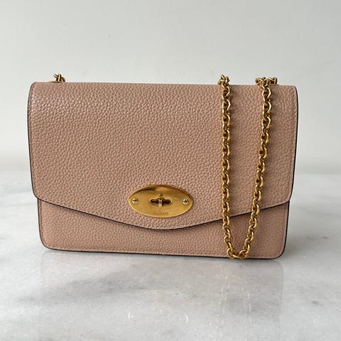 Powder Rose i Heavy Grain læder med guld hardware.