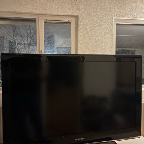 Pænt Samsung fladskærms-tv i sort, 37”. Det fungerer lige som det skal. Det står på en drejefod. Ikke smart-tv.