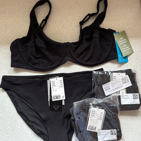 Helt nyt og ubrugt bikinisæt bh og 2 par bikinitrusser.