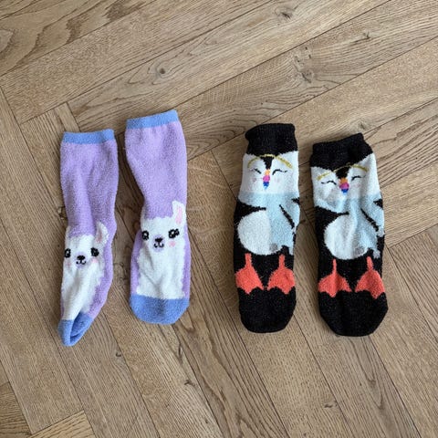 Hyggesokker i varierende stand. One size - vil tro, at de passer fra 8-14 år.