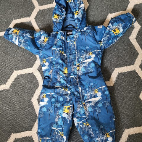 Dejlig varm, vind- og vandtæt flyverdragt med elastik og knaplukning ved fødderne.