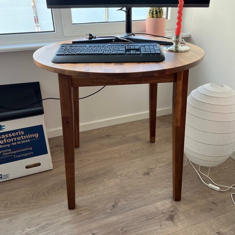 Bordet har hjul og er med gas, så den kan indstilles i højden.