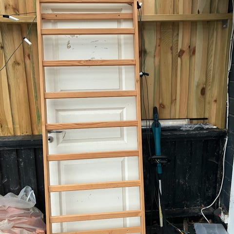 Abilica ribbevægt i træ. Stabil monteret og holder fint til voksne og børn. Ingen synlige skader.