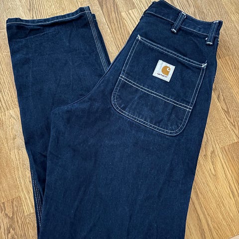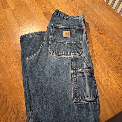 Carhartt Denim Bukser i blå farve, størrelse M med taljemål W32. Fremstillet i denim materiale, designet til mænd.