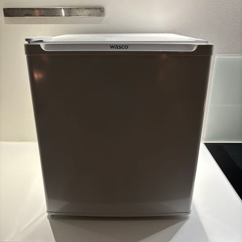 Mini Faxe Kondi køleskab med plads til ca 12 dåser. Ca 45 cm højt og 30 cm bredt. Fungerer fint men med små skrammer