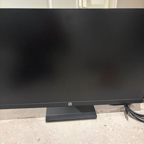 HP P27a G4 skærm med en skærmstørrelse på 27 tommer. Skærmen har en sort finish og er udstyret med HDMI-forbindelse. Designet til brug som computerskærm til forskellige arbejdsopgaver.
