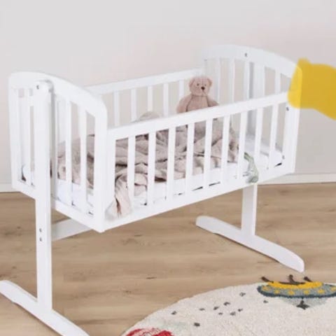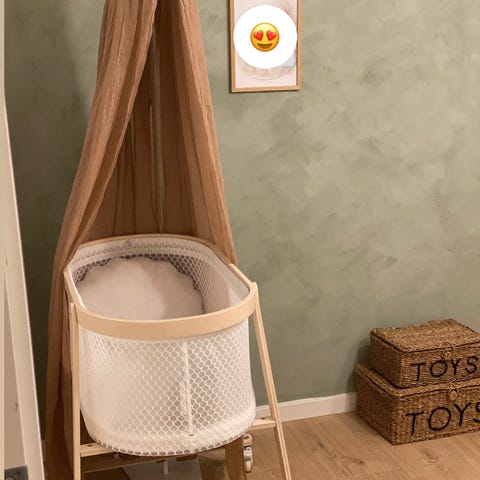 Babybjörn Vugge med netmateriale og træstel. Designet til at give et sikkert og luftigt sovemiljø til spædbørn. Madras og lang medfølger.