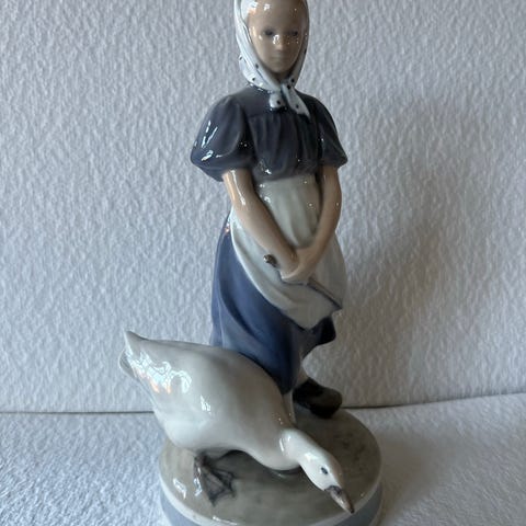 Royal Copenhagen Figur Pige med gås i porcelæn