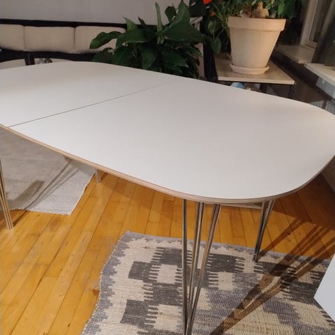 🔹 Praktisk udtræksbord – tillægsplader opbevares under bordet