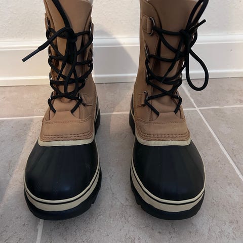 Sorel Caribou WP støvler i kernelæder og naturgummi. Brugt 2 gange, men er desværre købt for små. Ingen brugsspor og fremstår helt som ny. Nypris 1799 kr.
