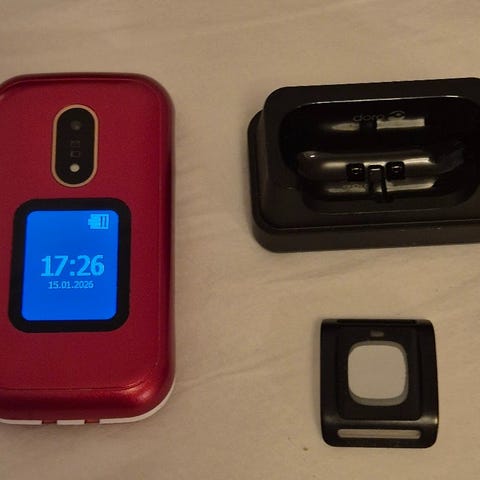 Doro 2414 ældrevenlig klaptelefonen med klar 2,8" skærm, der gør det nemt at læse tekster eller se billeder på skærmen.