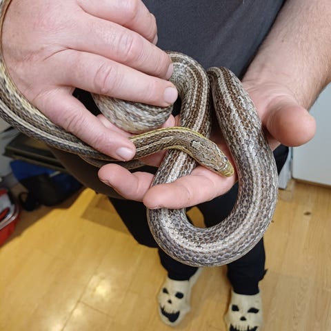 Han får frost mus hver 14 dag og spiser uden problemer samt skider og skifter ham uden nogle problemer.