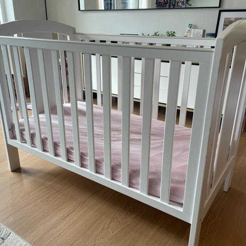 Madras er vandafvisende. Kan bruges både som tremmer seng og ombygges til juniorseng (tremmer fjernes på ene side).