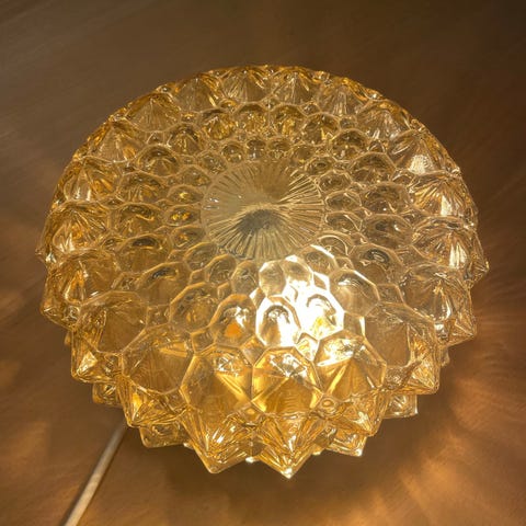 RZB plafond lamper fra 1970'erne. Glassene har en diameter på 20cm og er i perfekt stand. Monteringsbeslag i messing, har patina fra de 50 år som de har hængt i huset. 2 stk. identiske haves og prisen er for begge. Bud modtages også.
