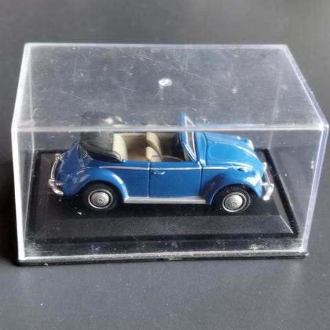 VW Beetle 1967 modelbil. Rød. Metal. 6.5 cm lang. . 1/64
