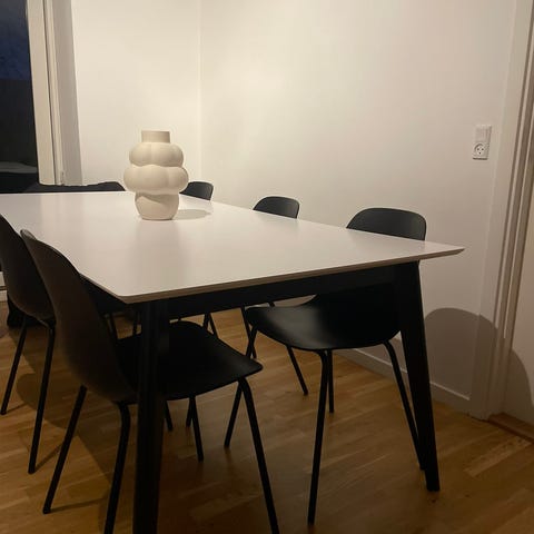 Solidt spisebord fra Ilva. Ridser (se billeder) som ikke er forsøgt fjernet. Der kan medfølge to tillægsplader gratis.