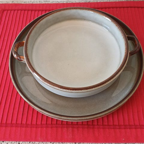 Sandfarvet tallerken diameter 18 cm fra Søholm stentøj, Bornholms.