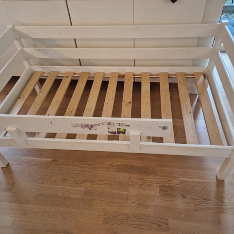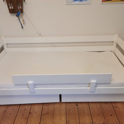 Der medfølger rigtig god madras og topmaddras uden pletter.