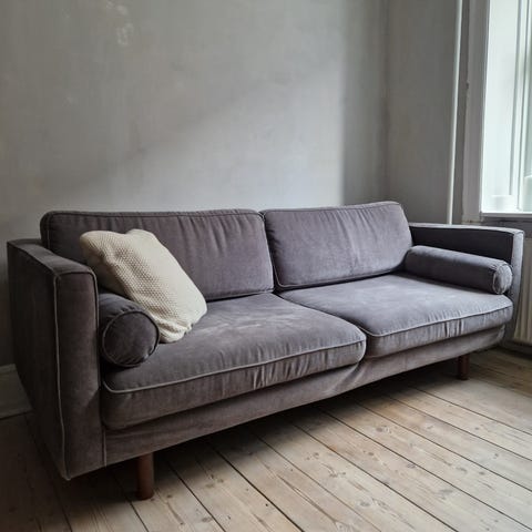 Sofaen kan ses og hentes på 5. sal på Indre Nørrebro.