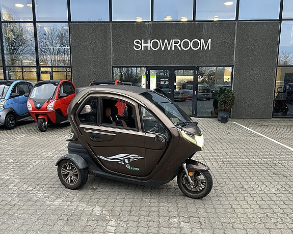 Brugt 3-hjulet el-scooter med komfortsæde og et smart digitalt display. Med denne scooter får du et alsidigt køretøj, som er både passer godt ind i bybilledet, men også klarer sig godt ude i naturen. Foran er der monteret en lille forkurv til bagage.