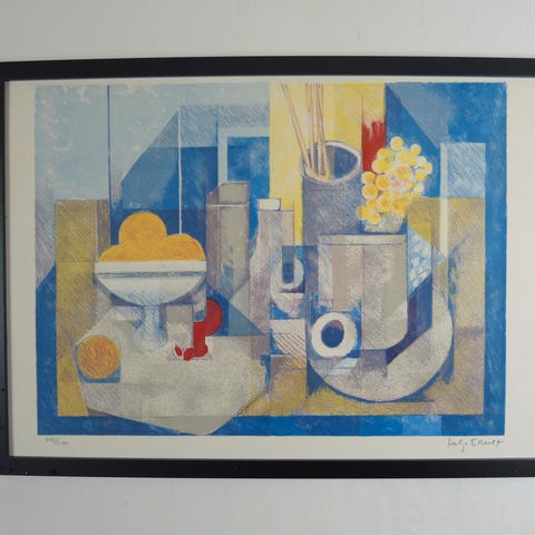 Signeret og indrammet serigrafi af Helge Ernst (1916-1991) medlem af Grønningen.