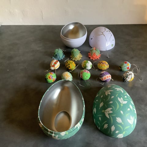 Påskepynt porcelænsæg i hvid med hvide blomster, 2 stk. Dekoration til påske.