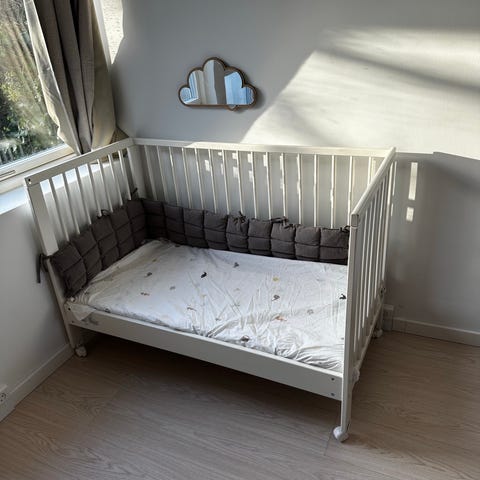 IKEA juniorseng designet til børn. Sengen er lavet i lyst træ og har en enkel og funktionel konstruktion, der passer til børneværelser.