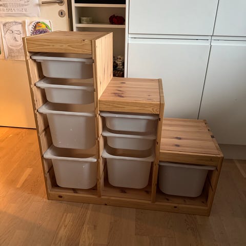 IKEA børnemøbel opbevaringsreol med plastbakker