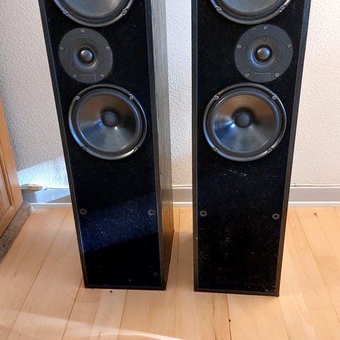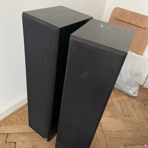 Dali 450 Gulvhøjtalere sælges. De har nogle skrammer, samt huller i det ene fronstof. Ud over dette, så ser de fine ud. Ophæng ser også okay ud.