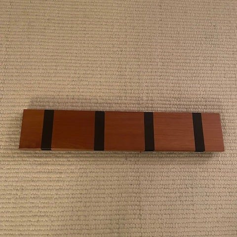 Super smuk og elegant knagerække fra KNAX. Knagerækken er i en flot hvid farve, med grå knager. Den er stilfuld og funktionel i mange indretninger: entré, stue, soveværelse eller køkken. Knagerækken er 39,6 cm lang og 7,9 cm høj og 1,8 cm dyb. Knagerækken har 4 knager. Alle knager er med vippefunktion. Nypris ca: 1.100 kr