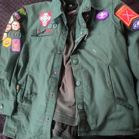 KFUM-spejderuniform i ny model størrelse 130/8 år sælges, inklusiv fleecetrøje. Uniformen har 2-3 små pletter, se billeder.