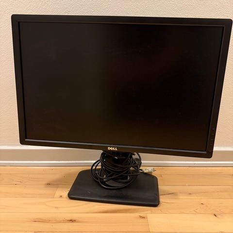 Dell 24 tommer skærm med standard sort design. Skærmen er egnet til almindelig brug og har en størrelse på 24 tommer.