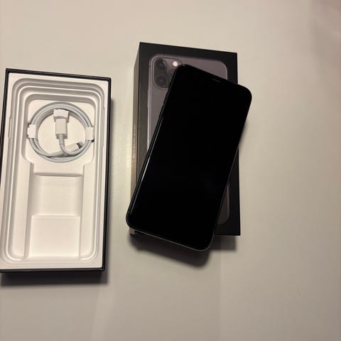 Velholdt Apple iPhone 11 Pro Max med 64 GB lagerplads. Space gray. Den leveres med original emballage og opladerkabel.