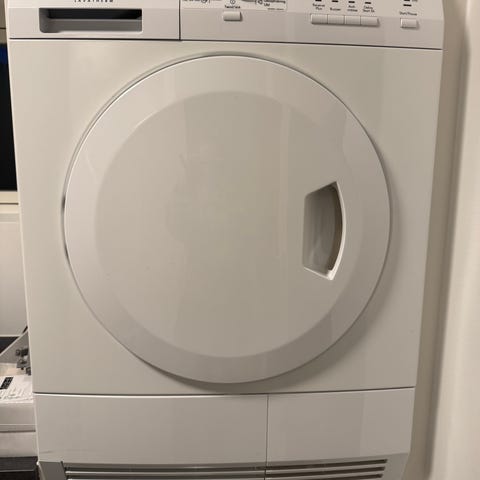 AEG Lavatherm T 50 kondens tørretumbler i hvid farve. Tørretumbleren har en frontbetjent tromle til tørring af tøj. Modellen er udstyret med kondensfunktion, der opsamler fugt fra tøjet under tørring. Designet til almindelig husholdningsbrug. Produceret i Tyskland før verden gik af af lave - fantastisk kvalitet. Låge kan vendes. Ikke kørt meget, da vi primært har brugt den i nødsituationer. Kører perfekt. Kan hjælpe med nedbæring til bil/trailer.