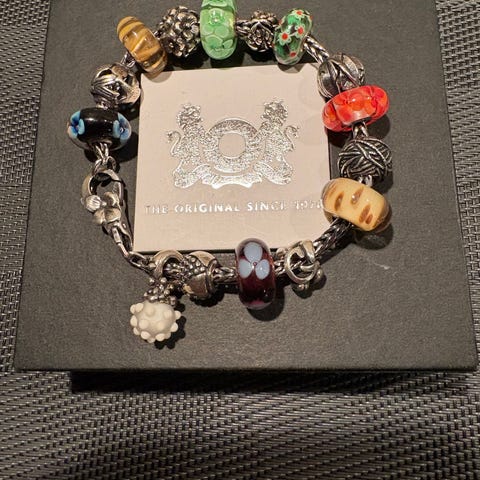 X by Trollbeads / troldekugle armbånd med 19 basisled violet/lys lilla, et bronze led og bronze lås stemplet BRONCE LAA.
