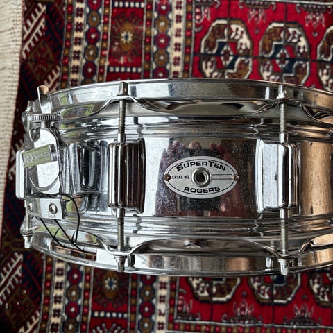 Vintage lilletromme. Lyder godt og alt virker. Coatingen er revnet og prisen er sat derefter.