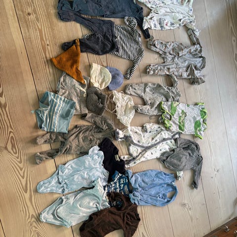 Petit Bateau, Joha, molo, benetton, Noa Noa, smallstuff, Hollys, multifarvet babybeklædning i størrelse 56-62 til både drenge og piger. Sættet indeholder 13 forskellige stykker tøj i flere farver og materialer, velegnet til spædbørn.