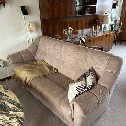 Sælger en beige sofa, købt brugt på Finn.no (den norske versjon av dba) for ca. 1 år siden.