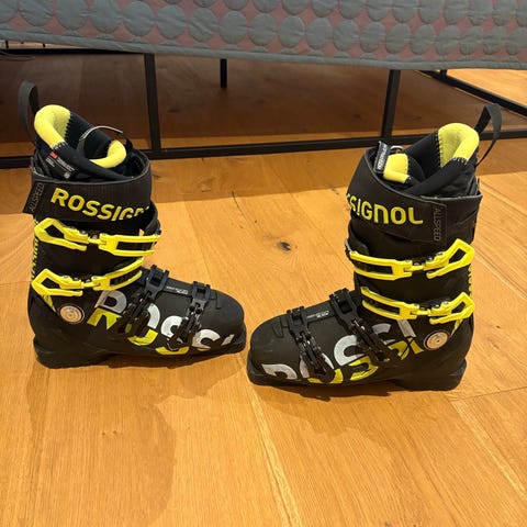 Topmodellen i Rossignols model Alltrack - som kører godt både på og off piste. Flex 130. Den bedste støvle efter min smag og forsøg med flere modeller. Str. 26.5 i mondopoint. 26,5. 308 mm udv. mål. Rossignol skistøvler