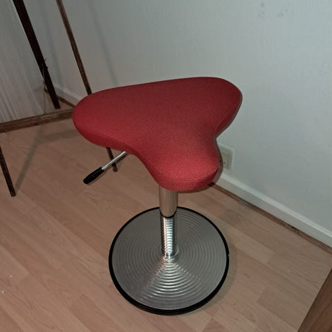 Saddelstol med justering af højde fra ca 50 cm til ca 70 cm samt kip af sæde