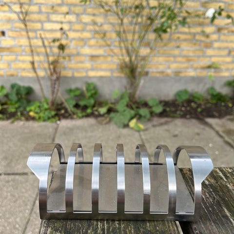 Ældre toastholder Arne Jacobsen for Stelton. "Cylinda Line" Den et produceret i mat poleret rustfrit stål.