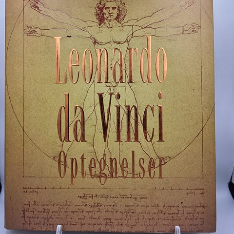 The Unknown Leonardo bog med tekst og illustrationer om Leonardo da Vinci, indeholder information om hans liv og værker, trykt i en hardcover-udgave.