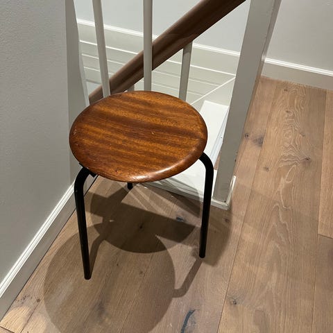 Skøn retro taburet — teaktræ og metal — 65 kr.